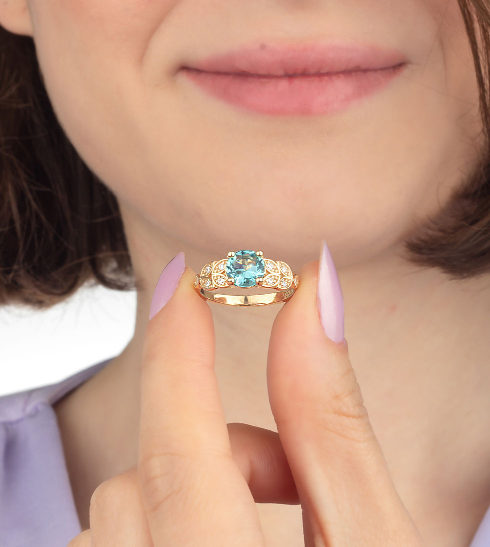 925 Ayar Gümüş Aquamarine Renkli Yaprak Kollu Yüzük