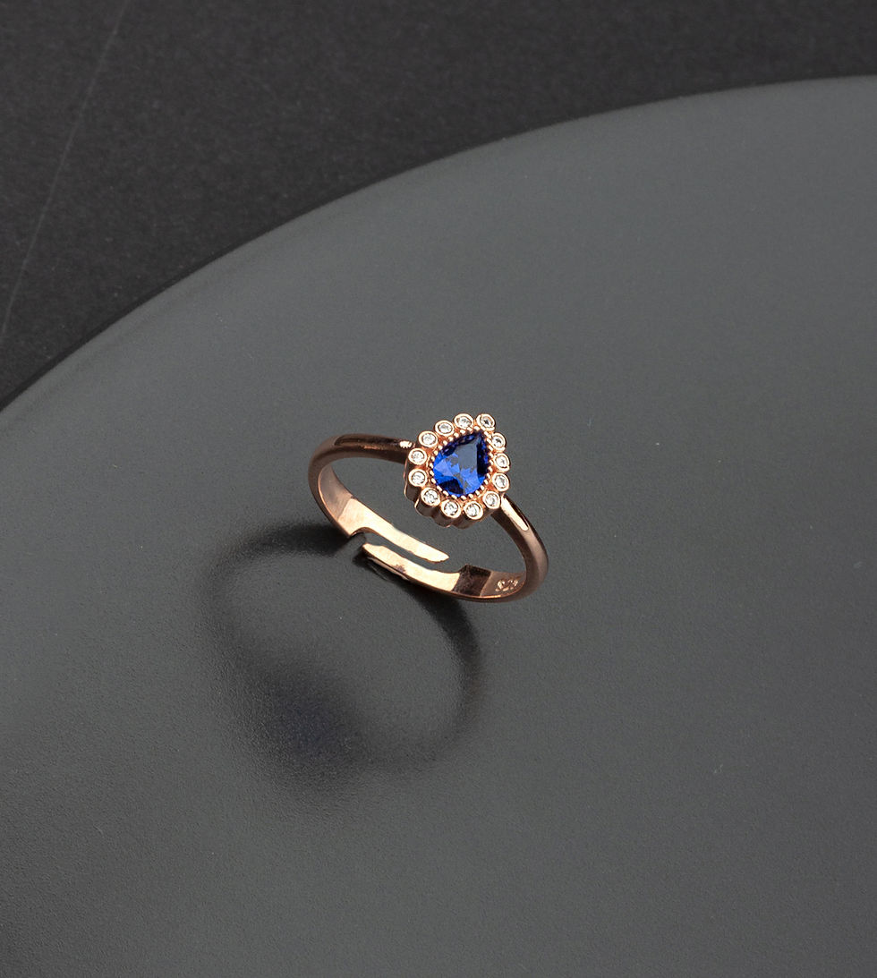 925 Ayar Gümüş Safir Taşlı Damla Model Ayarlanabilir Yüzük